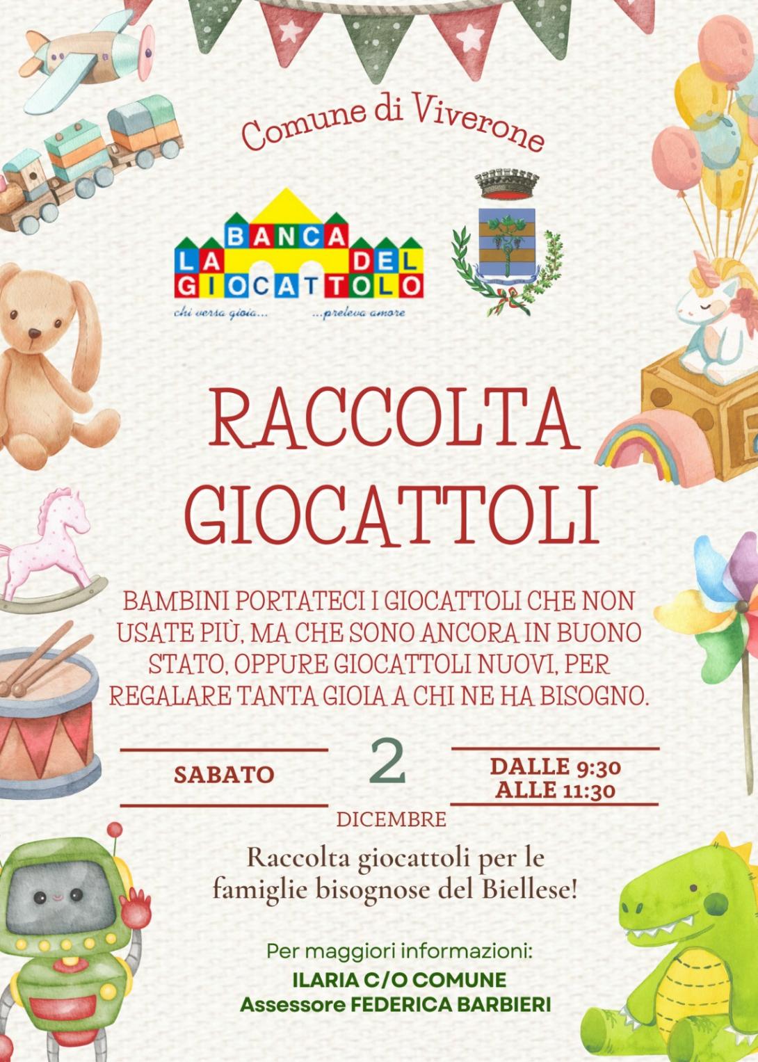Dalle ore 9.30 alle ore 11.30, nel magazzino comunale in Via Umberto I, raccogliamo giocattoli usati ma ancora in buono stato oppure nuovi da donare ai bambini meno fortunati del biellese.