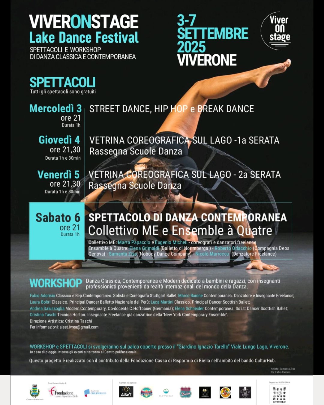 Dal 3 al 7 settembre a Viverone: spettacoli gratuiti e workshop di 𝐝𝐚𝐧𝐳𝐚 𝐜𝐥𝐚𝐬𝐬𝐢𝐜𝐚, 𝐜𝐨𝐧𝐭𝐞𝐦𝐩𝐨𝐫𝐚𝐧𝐞𝐚, 𝐦𝐨𝐝𝐞𝐫𝐧 𝐞 𝐬𝐭𝐫𝐞𝐞𝐭 𝐝𝐚𝐧𝐜𝐞 con artisti e professionisti internazionali.