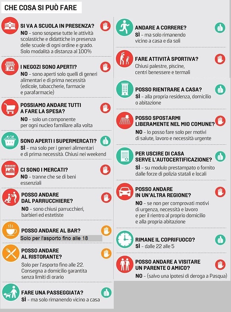 [❌] chiusi bar, pub, ristoranti, gelaterie, pasticcerie ma restano consentite la consegna a domicilio e l'asporto (bar fino alle 18 - ristoranti fino alle 22);