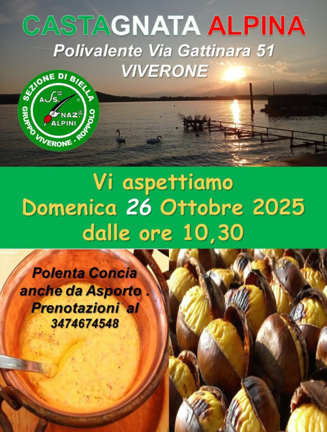 il Gruppo Alpini Viverone - Roppolo organizza la tradizionale Castagnata Alpina